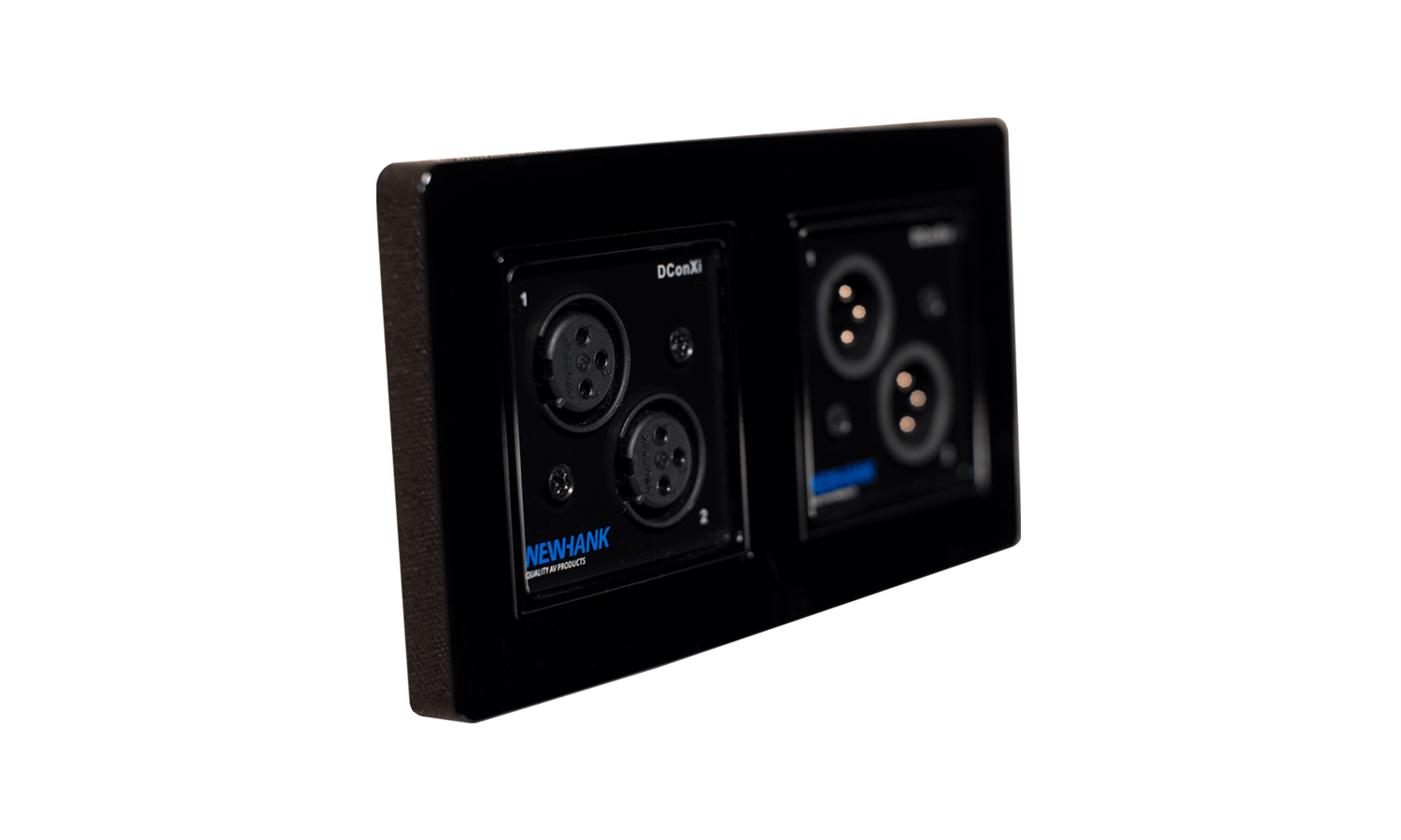 This two-channel XLR output panel converts Dante audio to analog. Its compact and sleek