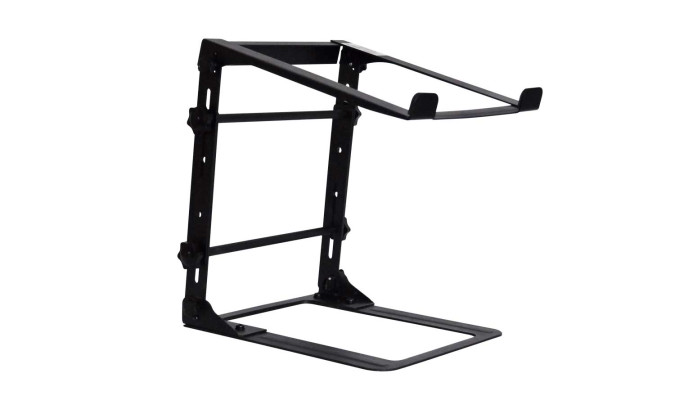 Light and easy to transport stand to easily and stably integrate your laptop, CD player, MIDI controller, FX machine or light controller with your DJ set. The stand is fully collapsible so that it is easy to carry and takes up little space. The Foldable Laptop Bracket is the most versatile laptop stand on the market.