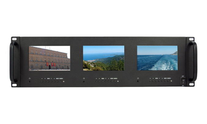 The NewHank MVIW-050-X3-RK is a professional 3u triple screen 19″ rackmount video monitor.