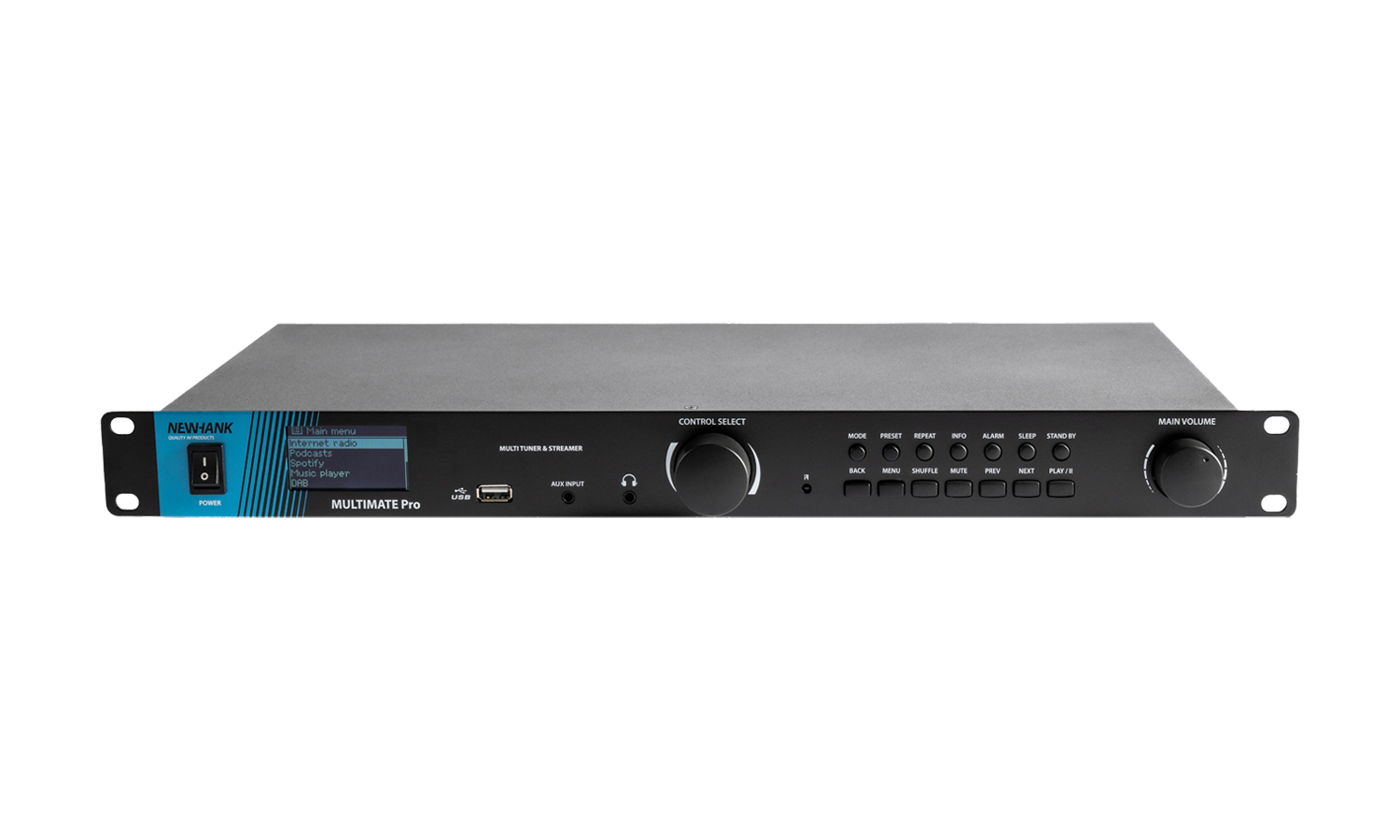 Discover and enjoy music from around the world with NewHank MULTIMATE! This professional 1U rack-mount Internet, FM, DAB/DAB+ radio and music player combines everything you need to stay tuned in. MULTIMATE allows you to listen to local and global radio stations, play music files directly from a USB drive or stream music through Bluetooth or Spotify Connect. With its large, clear display and an easy-to-use push-and-select rotary dial, navigating your options is both simple and intuitive. The NewHank MULTIMATE is your ultimate music companion, designed to keep you connected to all your favorite tunes.